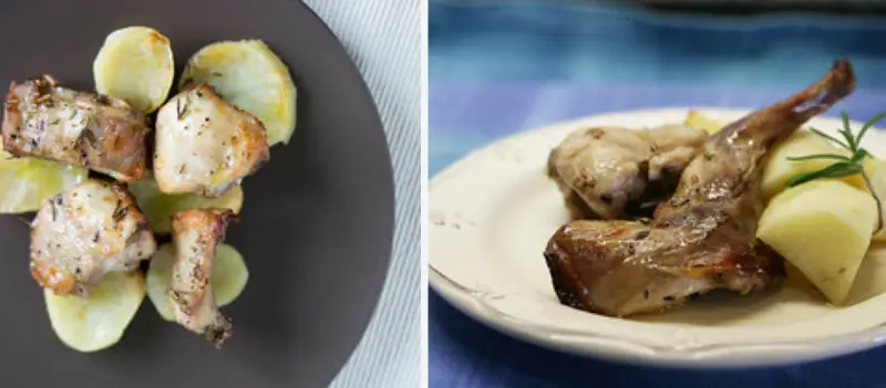 - Season the pieces of rabbit with salt and pepper, season with the rosemary and thyme, leaving it to marinate for about 30 minutes.