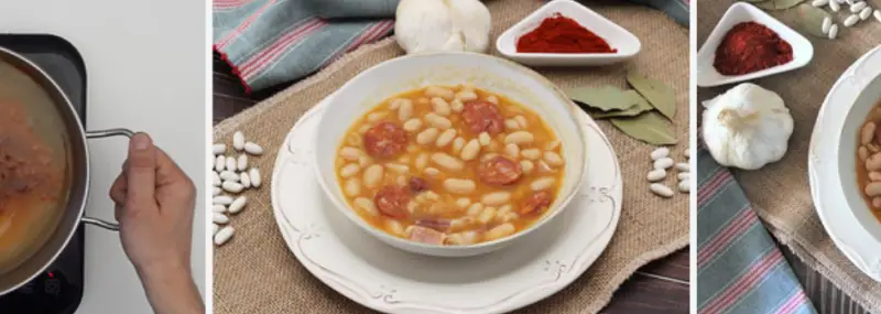 Cooking and final presentation of the beans with chorizo