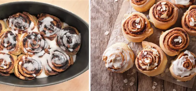A simple spiral cinnamon bun filled with butter, cinnamon, and sugar with a simply delicious frosting finish. In many cases raisins are added, but they are not necessary to appreciate the flavor and texture of this cake. What are you waiting for? To the kitchen immediately.