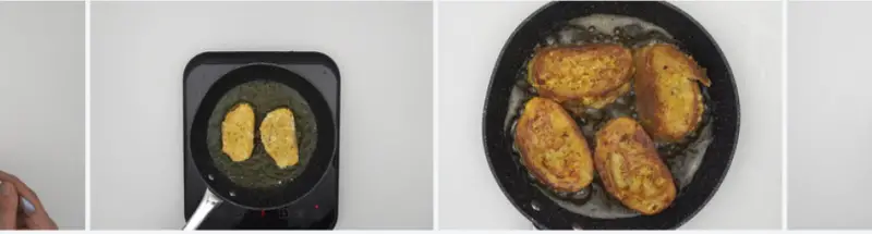 - We fry the French toast on all two sides until golden. We use a fork to go around the French toast.