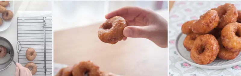 - The other option, which is the one that my father likes the most, is to glaze them with a soft syrup, butt of sugar. We simply make a syrup in a saucepan. Where we usually prepare milk in the morning with the ingredients of the recipe and let it reduce. We pass all the donuts dipping on both sides in the syrup. This will cause a scab to form and keep them in good repair for a long time. We put them on a baking tray or on the counter, and after a while we reposition them so that they do not stick before the sugar dries.
