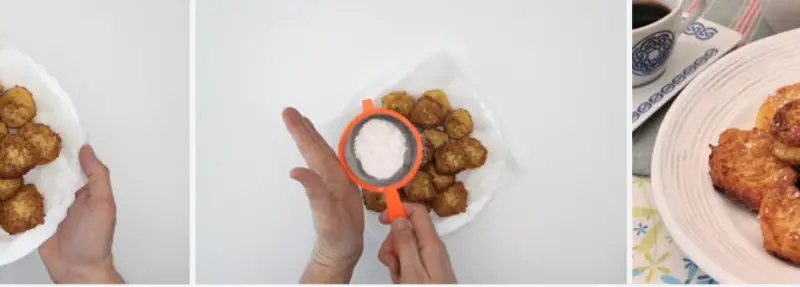 - When they are warm sprinkle with icing sugar. That way they would already be perfect. We serve them freshly made and to enjoy.