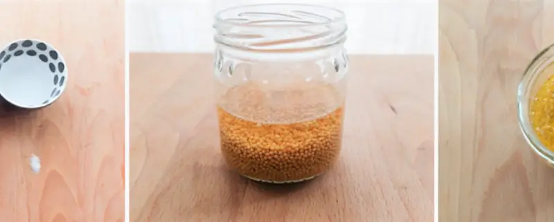 - We put the mustard grains in a bowl and cover them with the vinegar and 100 ml. of water for 12 hours.