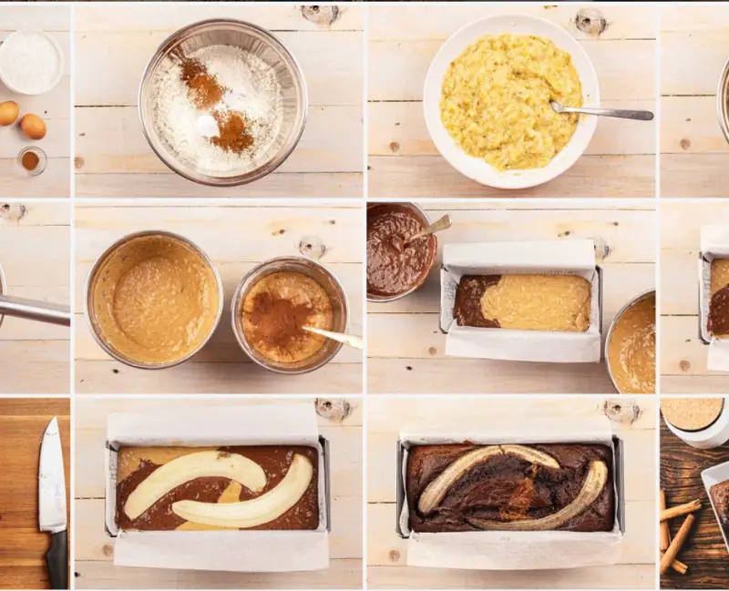 Baking and final presentation of the marbled banana cake