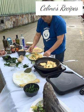 The place chosen to record the video and prepare this recipe could not be more appropriate, to Lonxa de Burela . With views of the sea and a bit of sea breeze, we prepare these pancakes stuffed with the highest quality product, hake do pincho .