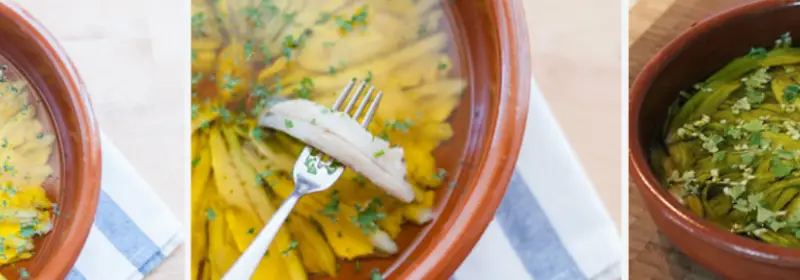 One of the best possible combinations with a beer is anchovies in vinegar, a kind of cold marinade in an acidic medium, similar to Peruvian ceviche but with vinegar instead of lime juice.