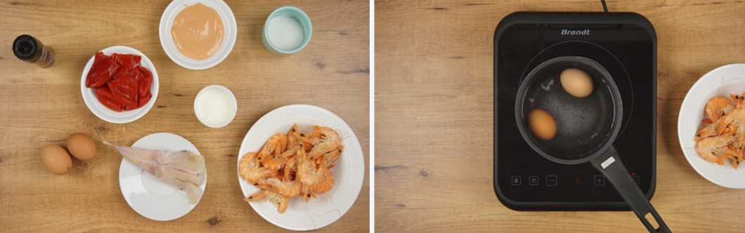 - To prepare this recipe in no time, we start with the step that will take the most time, we put a saucepan on the heat and cook the eggs .