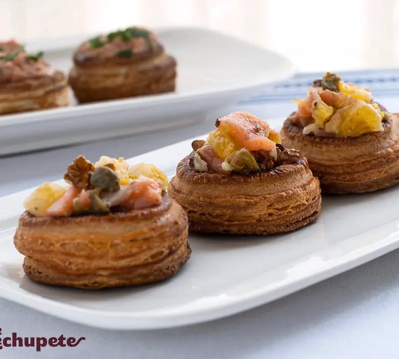 Today I have prepared four options of starters presented in stuffed puff pastry volovans . They are light combinations that will not make us lose our appetite to enjoy the rest of the meal, but that will make us enjoy some delicious bites.