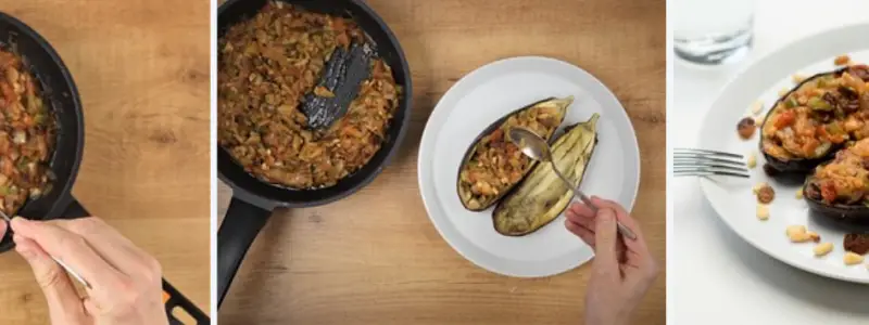 You can see all the photos of the step by step in the recipe for Turkish stuffed aubergines . Do not miss any detail and they will be perfect.