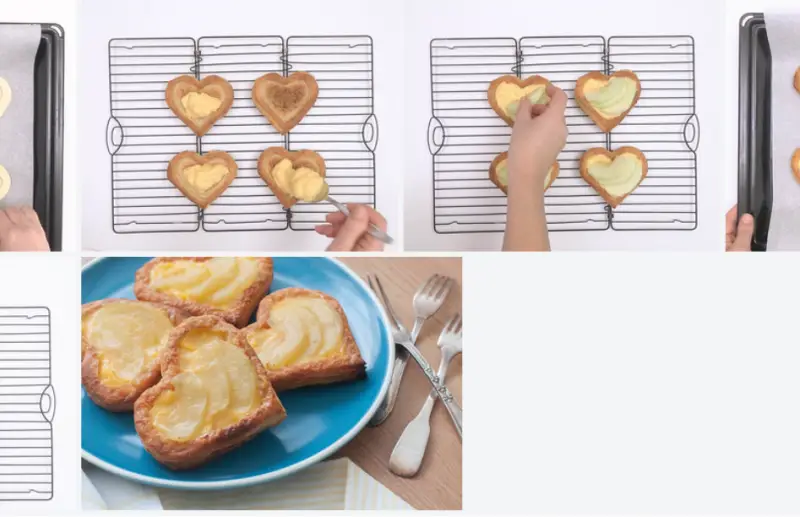 Preparation of the puff pastry. Heart shape and baked